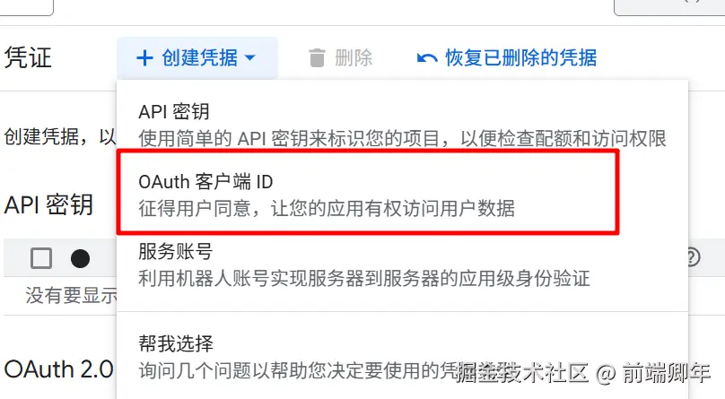 - 点击 "创建凭据" → "OAuth 客户端 ID".