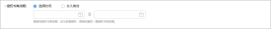 | 选取证书请求文件(CSR) | 上传生成密钥和证书请求文件 时获取的.csr文件。 |