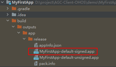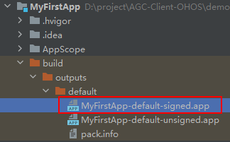 - 等待编译构建。编译完成后,将在工程目录"build > outputs > default"目录下,获取可用于发布的应用包。