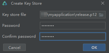 - 在"Create Key Store"界面,填写密钥库信息后,点击"OK"。