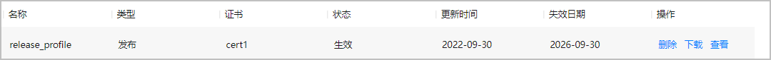 | 选择证书 | 点击"选择",选择申请的发布证书 |