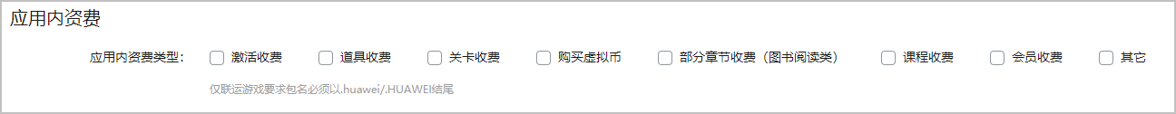 选择应用内资费类型,即用户在使用应用过程中的付费类型,如因使用道具、开通会员等进行的付费。支持多选。