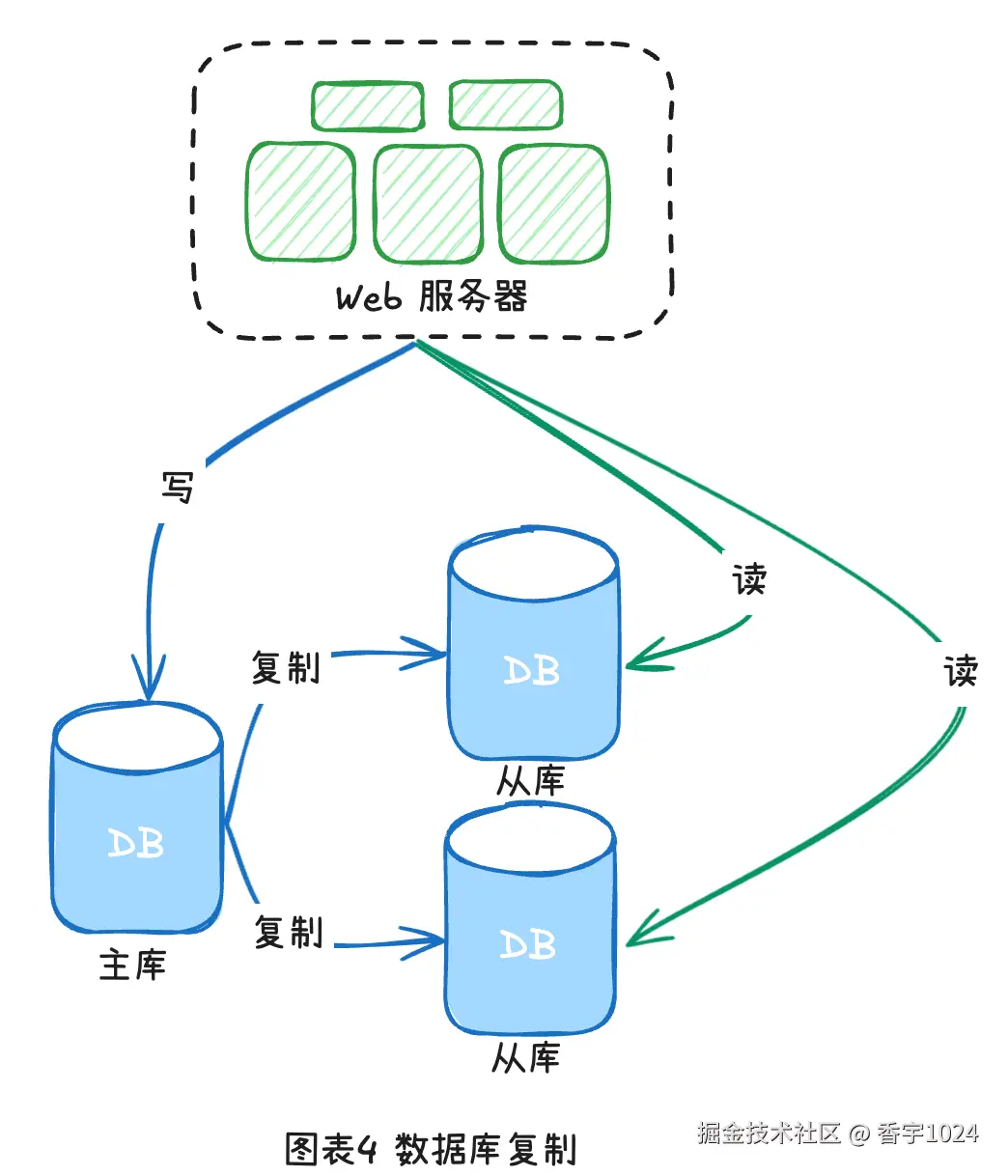 在实际应用中,读请求通常远多于写请求,因此系统往往配置多个从库以分担读负载。数据库复制通过将主库数据同步到从库,实现水平扩展并提升系统可用性。