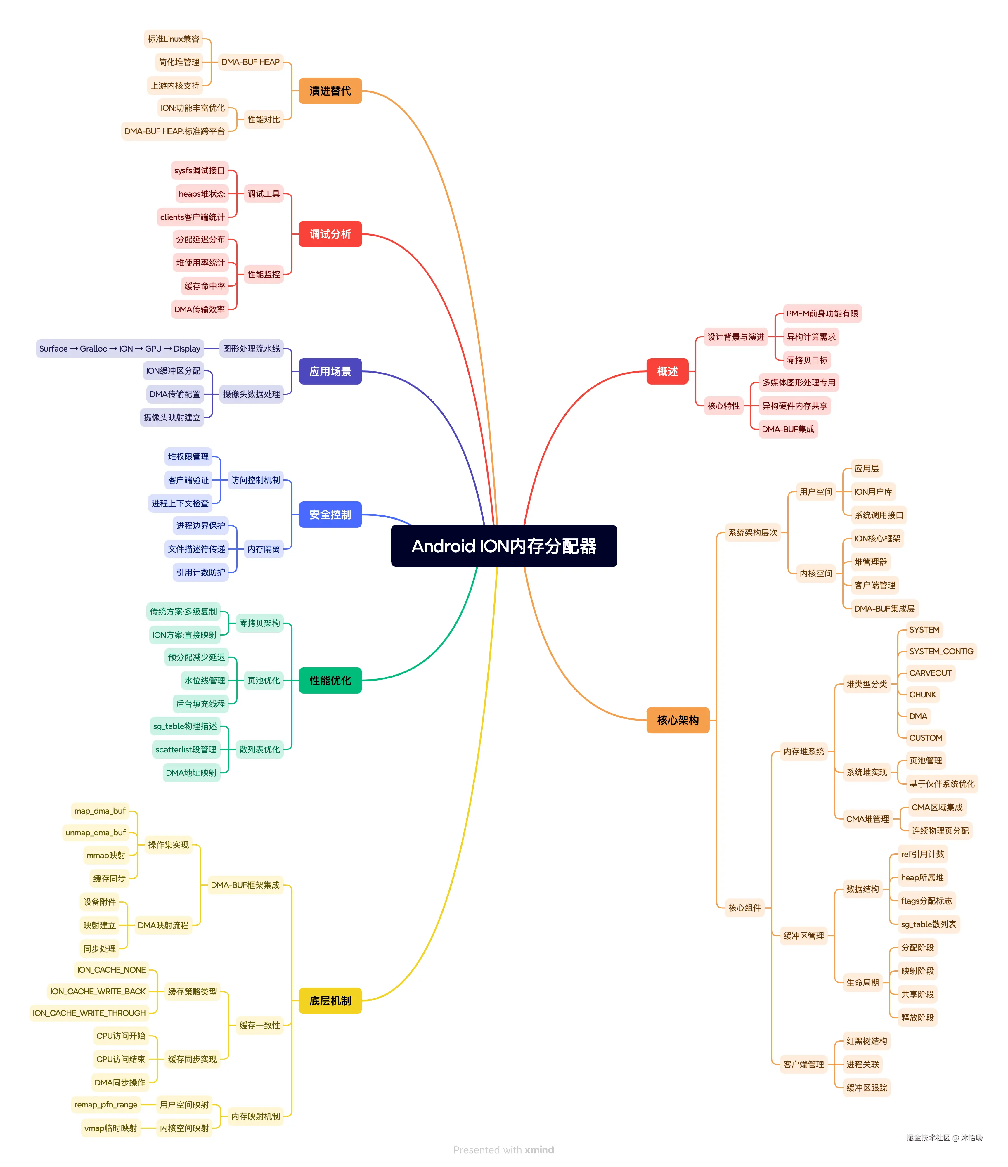 ION(I/O Memory Manager)是Android系统中专门为多媒体和图形处理设计的内存管理框架。它解决了在异构计算环境中不同硬件组件(CPU、GPU、DSP、摄像头等)之间高效共享内存的挑战。
