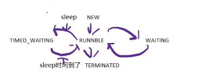 - (从运行中)遇到sleep方法时 --> 计时等待状态(Timed_Waiting)