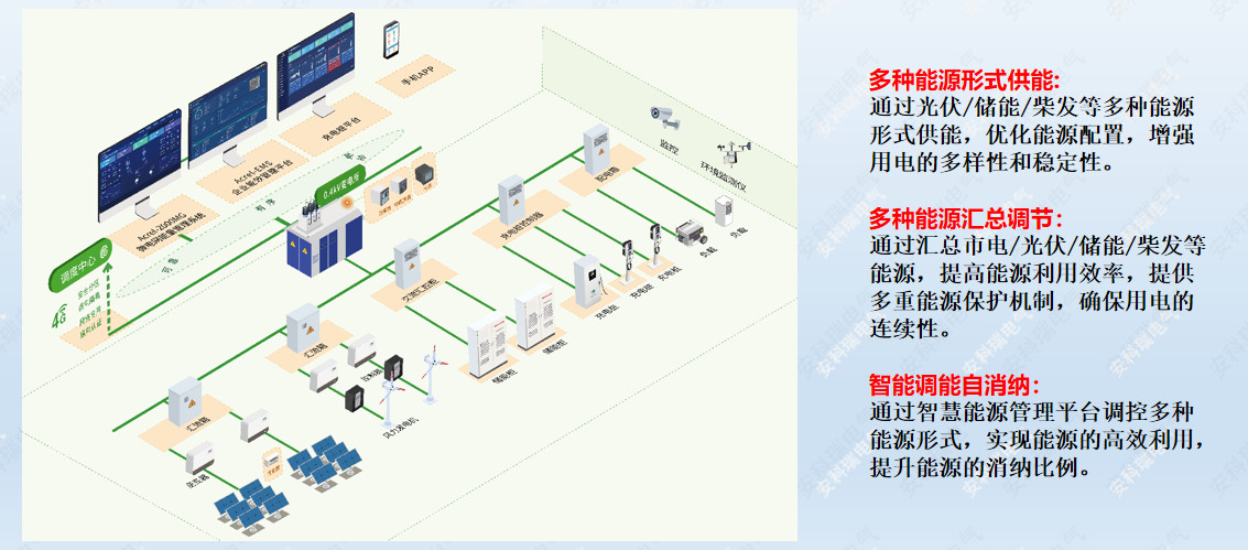 3.1.2通过多种能源与微电网能量管理系统结合,解决工商业园区用电难、供电不稳定、市电弱等问题,实现供能多样化、供电可靠性与供电连续性。