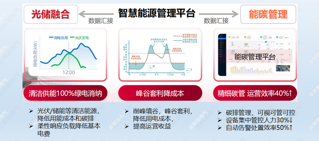 3.1.1通过多源与储能开展能碳管理,解决高能耗园区设备能耗大、电费高、扩容扩产、信息孤岛等问题,实现能源结构优化、能效提升和低碳运营。