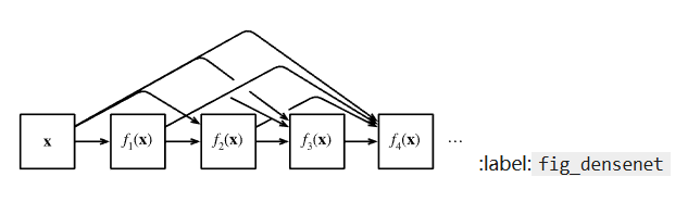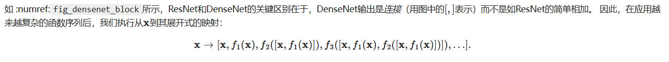 稠密网络在resnet上更进一步,不是将两个输出简单相加,而是在通道维度上相加。