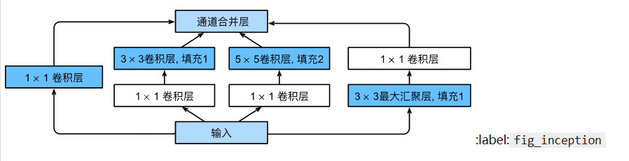 在代码中实现这个块的方法是并行得到结果后在通道维度上将所有结果叠加。因此,多次堆叠这个块后通道数会变得很高。