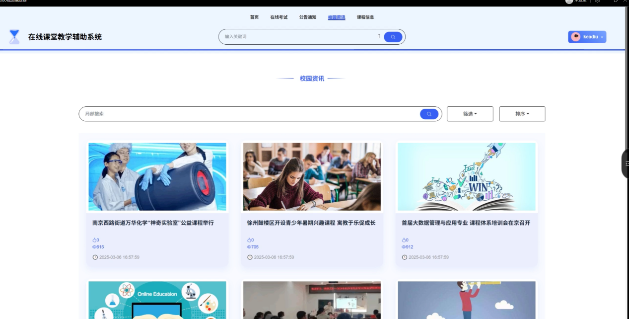 关键词:在线课堂,教学辅助,SpringBoot,教育管理,在线考试,系统设计