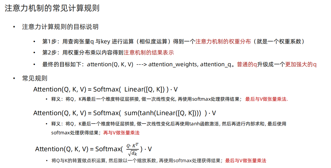 4、注意力机制常见计算规则