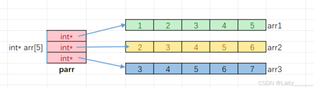 printf("%d ", parr[i][j]);//parr[i]是访问parr数组的元素,