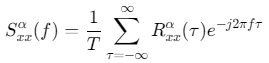 其中ααα为循环频率,Rxxα(τ)R_{xx}^α(τ)Rxxα(τ)为循环自相关函数。