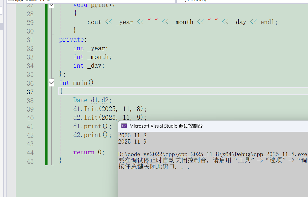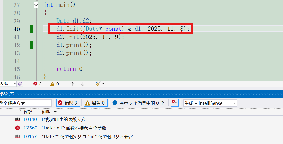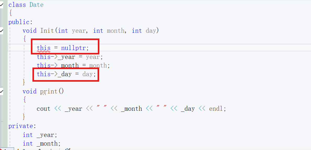 this指针。eg:void Init(int year, int month, int day)--被编译器替换为--void Init(Date* const this, int year, int month, int day)而我们调用成员函数时便是