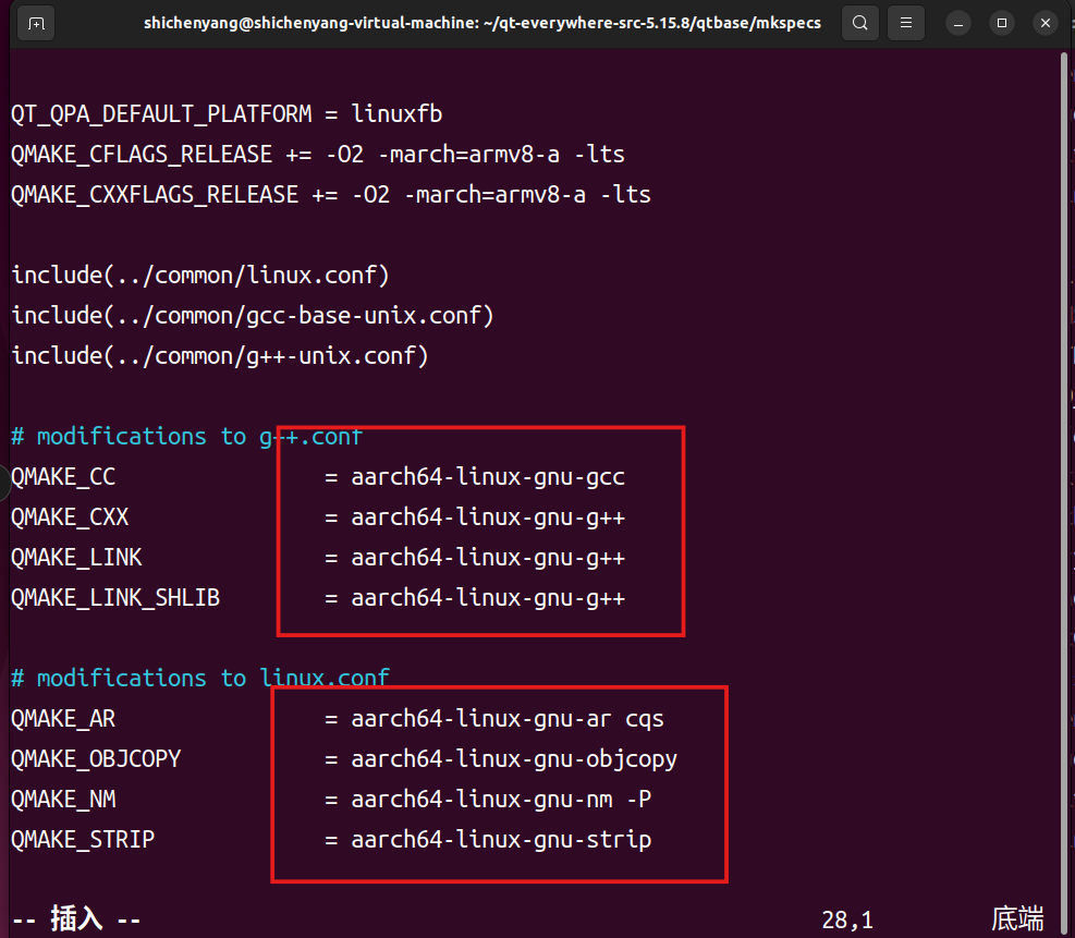 然后进入指定文件继续配置,这里注意红框内修改为自己的交叉编译工具链。
