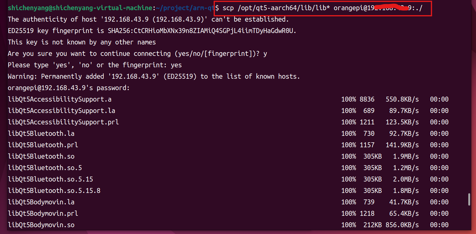 scp /opt/qt5-aarch64/lib/lib* orangepi@yourARMip:./