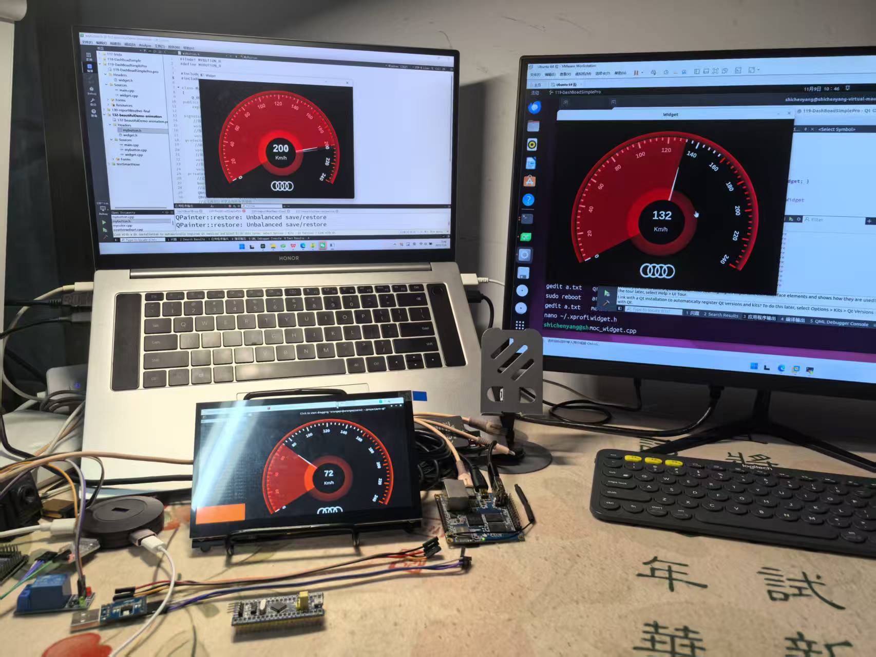 在全志H616的ARMLinux平台上进入工程,执行 ./arm-qt 即可运行项目。(注意,想要看到可视化界面需要将开发板插上显示器和键盘,在可视化界面调起命令行窗口执行以下命令)