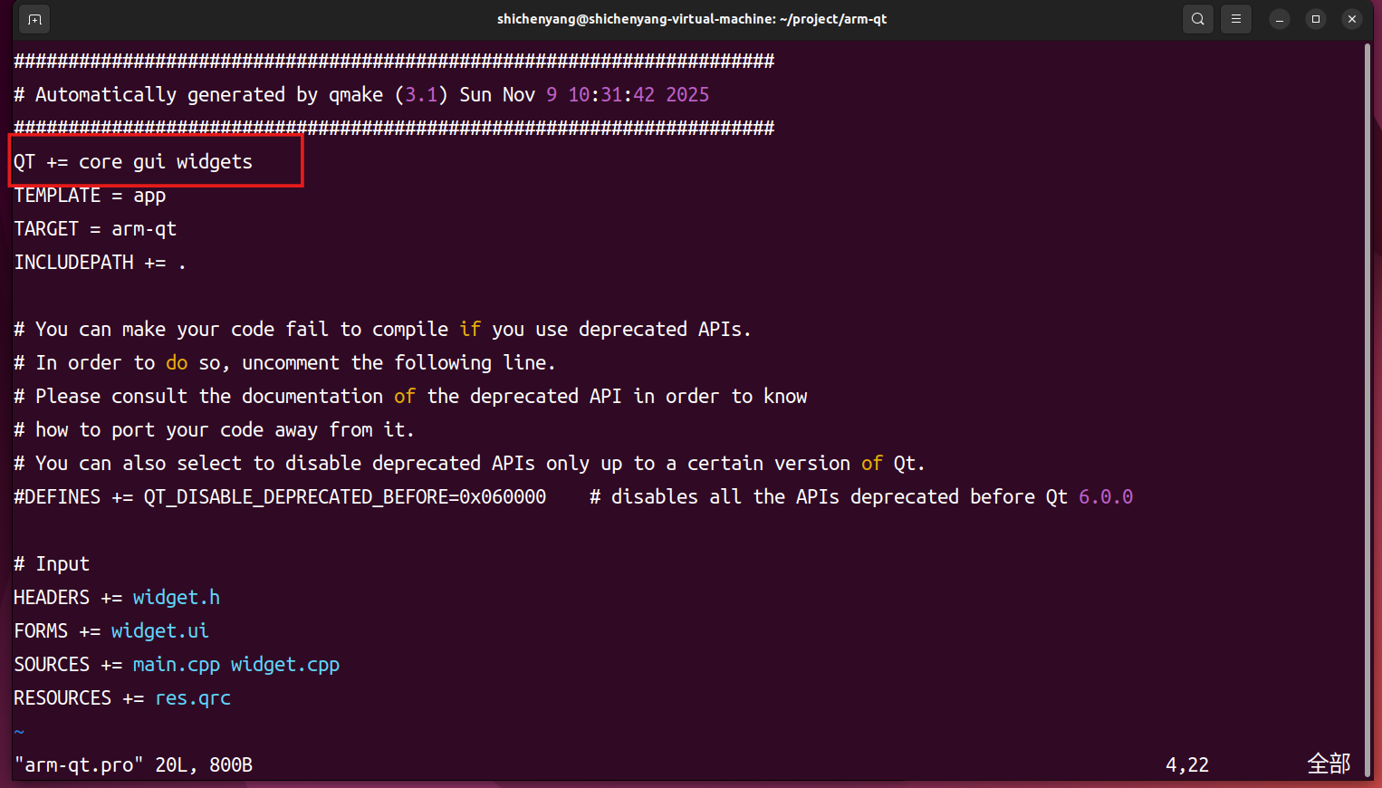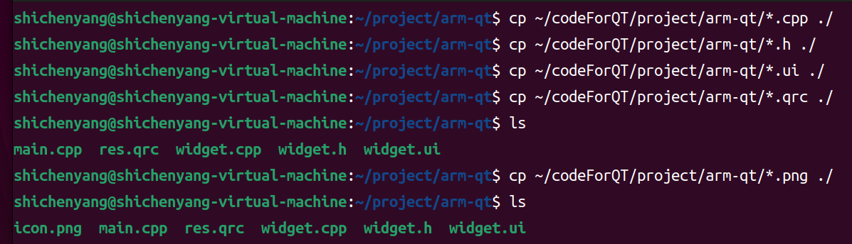 然后将项目所有的.cpp .h .qrc .png .ui 文件全部复制到/project/arm-qt/的路径下。
