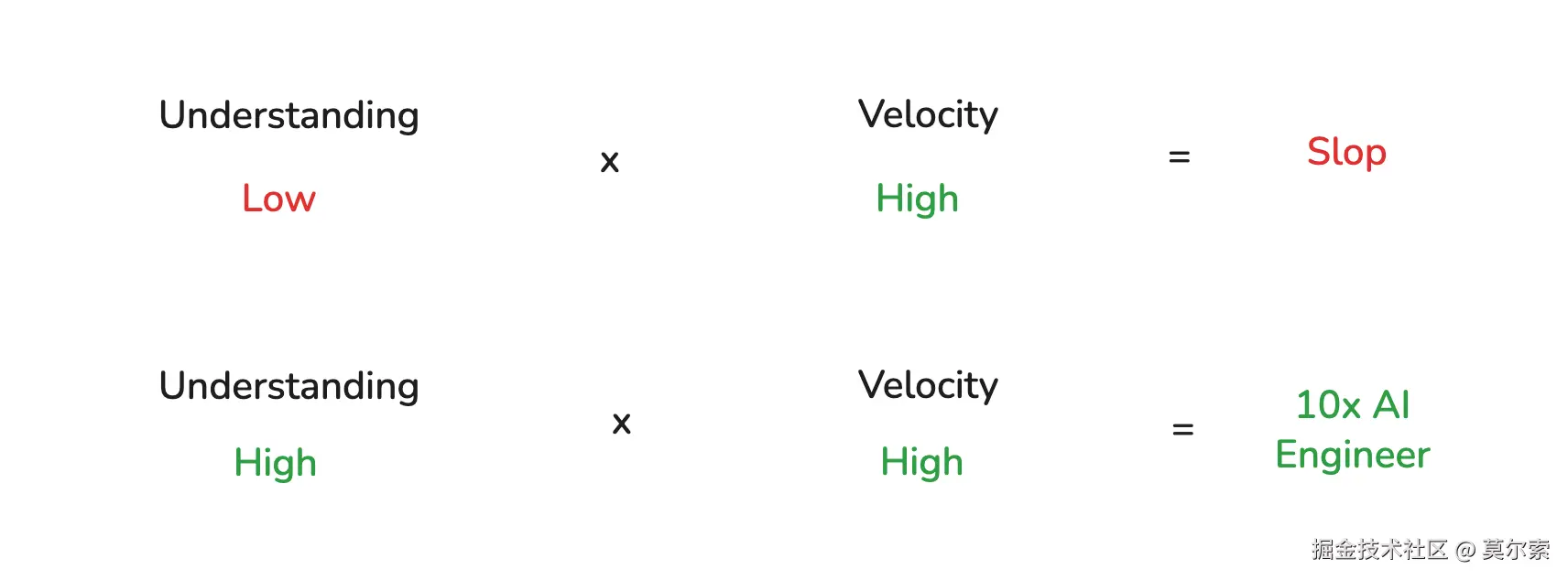 "理解"即意味着"负责" 。随着 AI 承担越来越多基础性编码任务,开发者面临的挑战也日益复杂:调试系统、重构遗留代码、制定架构决策------这些工作都要求真正的深度理解。在这一背景下,开发者的角色正从"代码编写者"向"责任承担者"转变。你或许不再亲手编写每一行代码,但仍必须对你交付的成果负责。