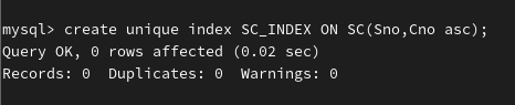 3.为SC表建立按学号(sno)和课程号(cno)组合的升序的主键索引,索引名为SC_INDEX