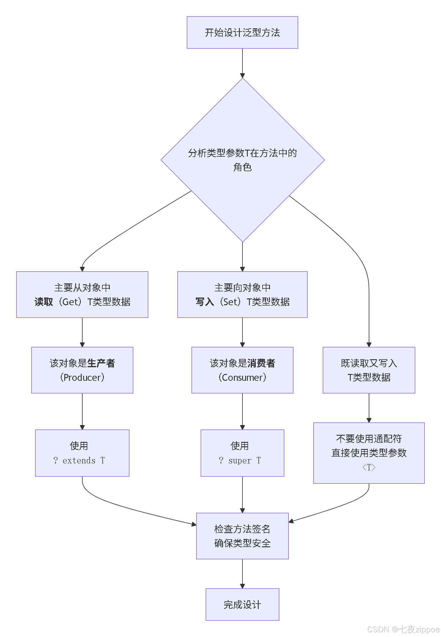 ? extends T用于安全地读取 (生产者),? super T用于安全地写入 (消费者)。 - PECS是指导原则 :Producer-Extends, Consumer-Super 这个简单的口诀,是你在泛型世界中做出正确选择的罗盘。