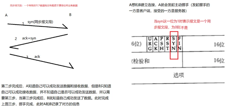 第一次握手后,服务器(B)知道了自己可以成功接收数据,客户端(A)可以成功发送数据,但 A 不知道;第二次握手后,A知道自己可以成功发送数据和接收数据,但是B只知道自己可以成功接收数据,并不知道自己是否可以成功发送数据;第三次握手后,B就知道自己成功发送了数据。此时握手完成,此时A和B记录了对方的信息