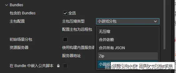 压缩选项: 在构建Web Mobile时,可以开启Zip压缩,让整个Bundle压缩成为一个Zip文件,体积更小。