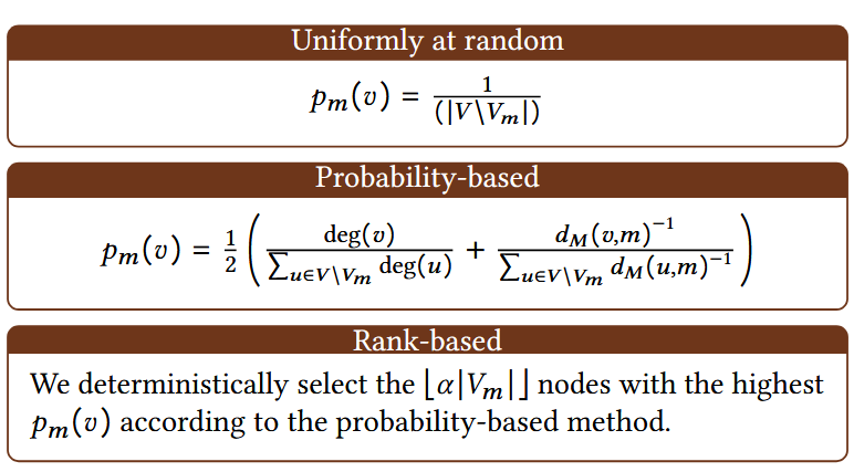 然而,通过随机采样生成的负超边从而构成的负motif样本规律性太弱,这样的负样本可能很容易就会被分辨出来,为此,作者提出了上图中的方法。**该方法通过将正实例中一定比例α的节点替换为网络中的其他节点,从而生成负样本。**但本文所采取的技术引入了一种专门针对超图设计的改进型节点替换选择机制,能够获得更合理(即与正样本更接近)的负样本。具体而言,待替换的节点通过均匀随机抽样选择,而替换节点则根据节点替换评分来选取。这些评分基于节点到motif的距离以及节点度数计算,因此会优先选择与目标motif距离近且连接度高的节点。