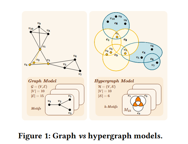 论文中给出了一张图来说明超图上的小结构(右)与普通图上的小结构(左)对比。
