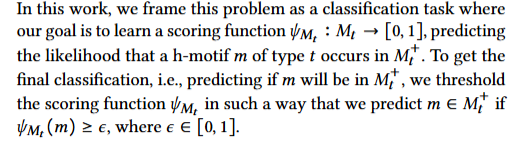 本文将预测motif形式化为一个二分类任务,即判断理论存在的motif的集合中的每一个元素是否真的存在于