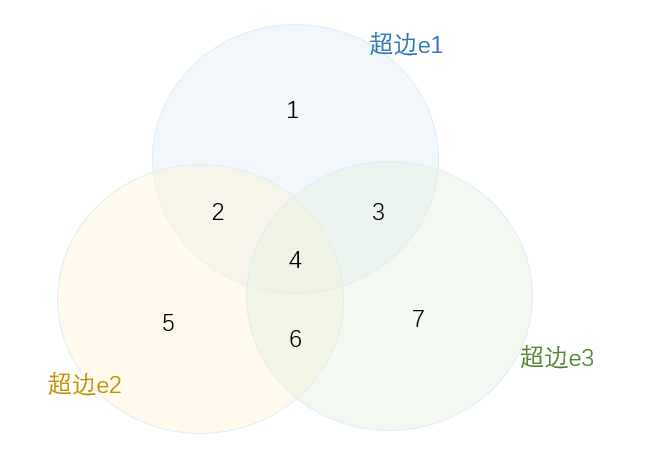 本文所研究的motif都是由三条超边组成的也就是如上面那个图所画出来的那样,三条超边部分重叠,将所在其范围内的节点划分成了七类(如图中序号所示):