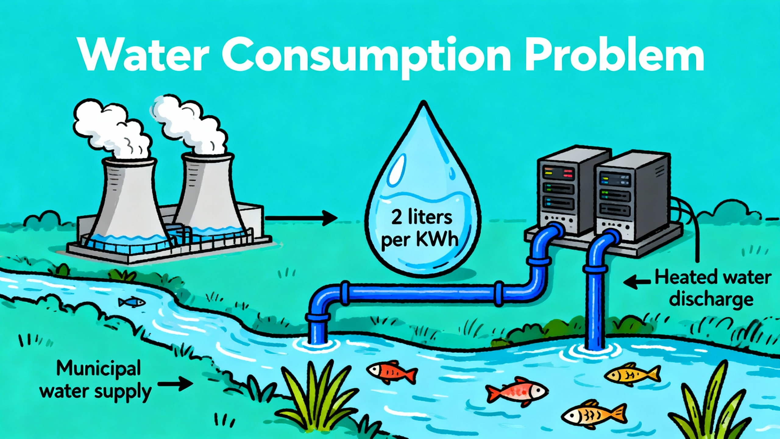 这就意味着,一个大型数据中心的运转,会给当地的水资源带来不小的压力。而且这些水用完之后,温度会升高,如果直接排放到河流或湖泊里,可能会影响当地的生态系统。