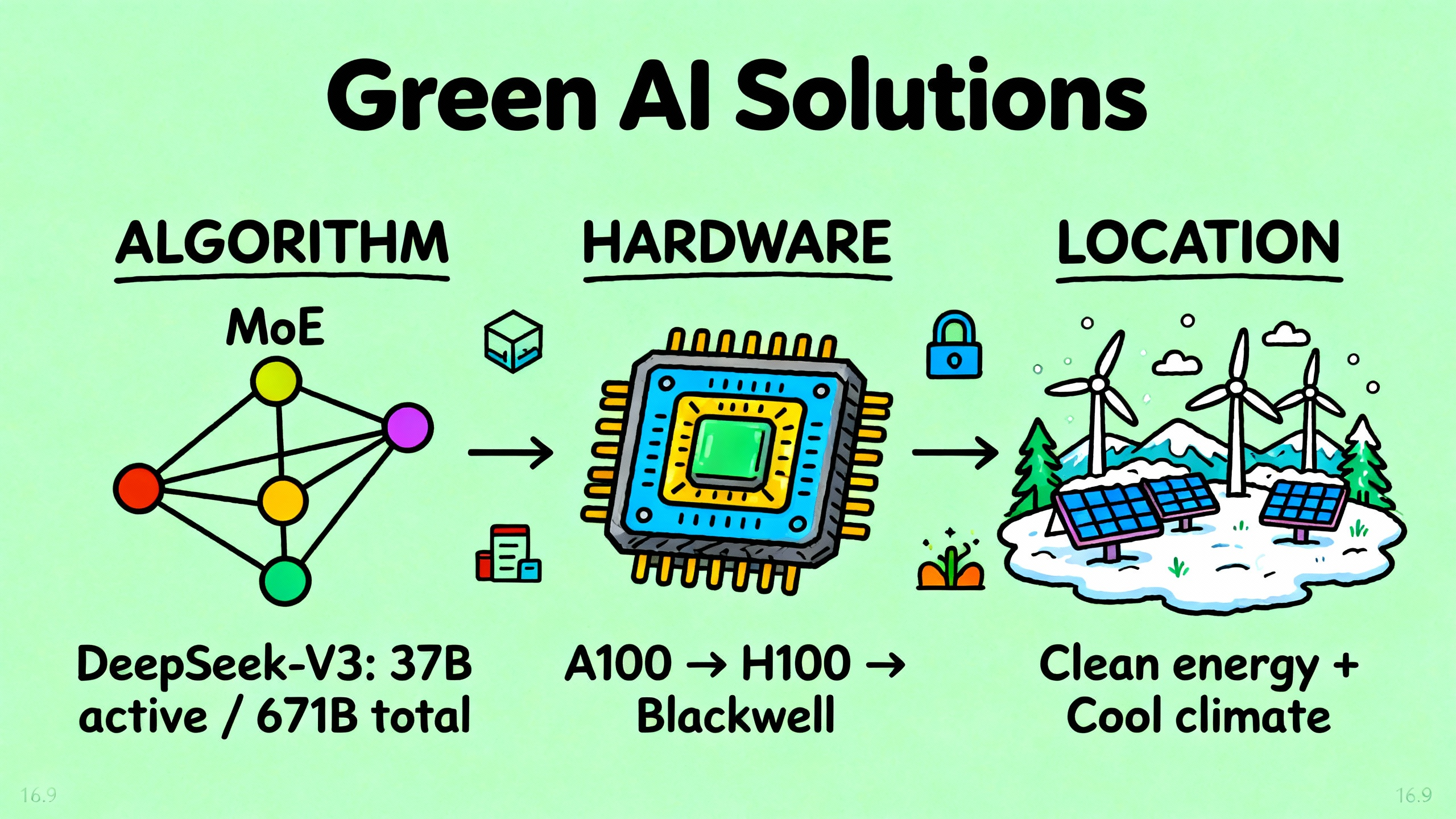 选址策略,有些公司开始把数据中心建在电力更清洁、气候更凉爽的地方。北欧就很受欢迎,那边有大量的水电和风电,而且天气冷,冷却成本低。
