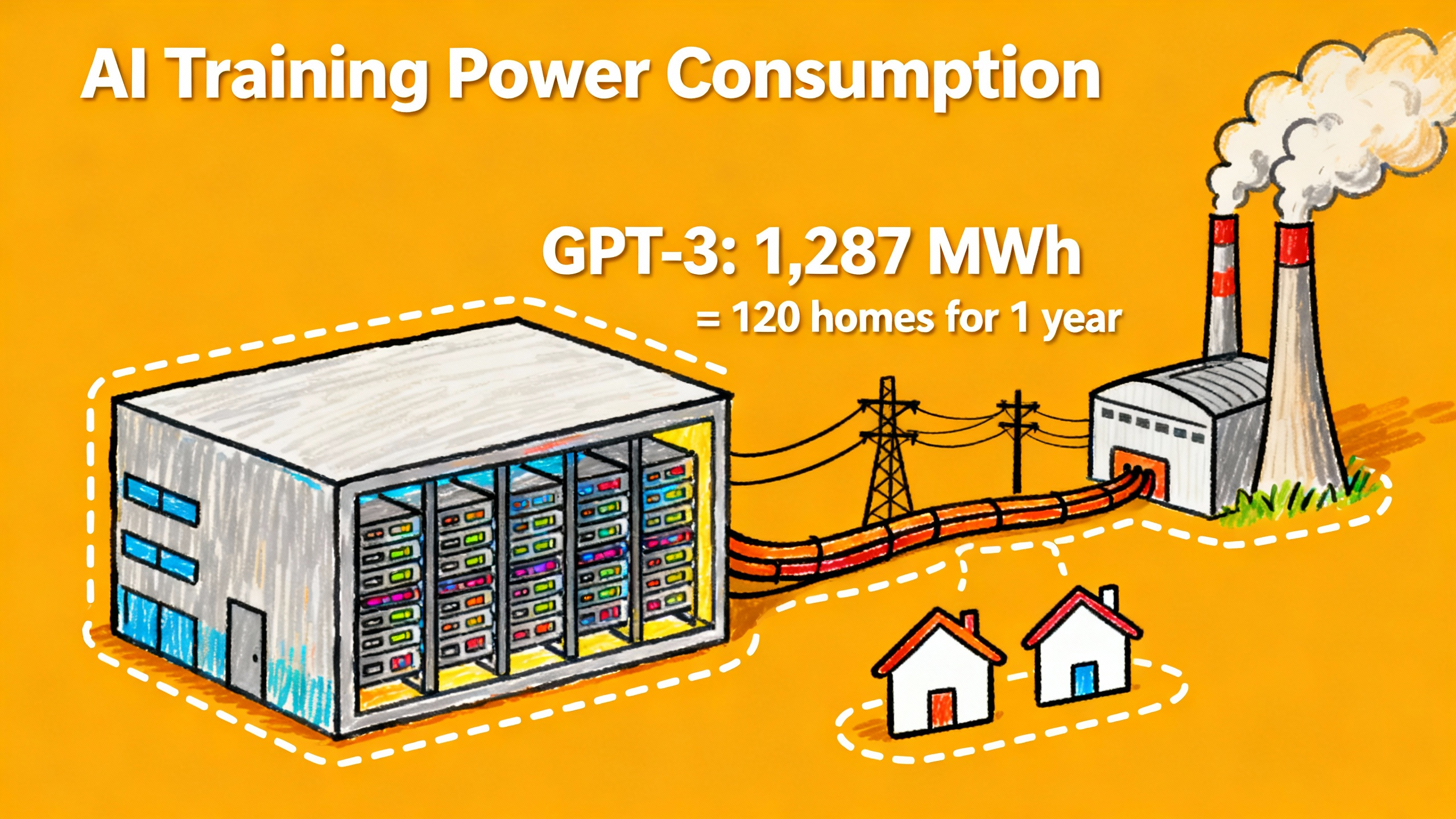 前段时间看到一个数字,把我吓了一跳:训练 GPT-3 这个模型,总共消耗了 1,287 兆瓦时的电。这是什么概念?大概相当于 120 个美国家庭一年的用电量。