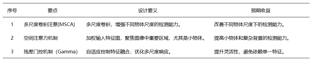 (2)插入次数/宽度:架构策略决定是否在P3/P4加轻量MSAM,以及是否缩通道(如 MSAM(ch/2))平衡性能与效率。