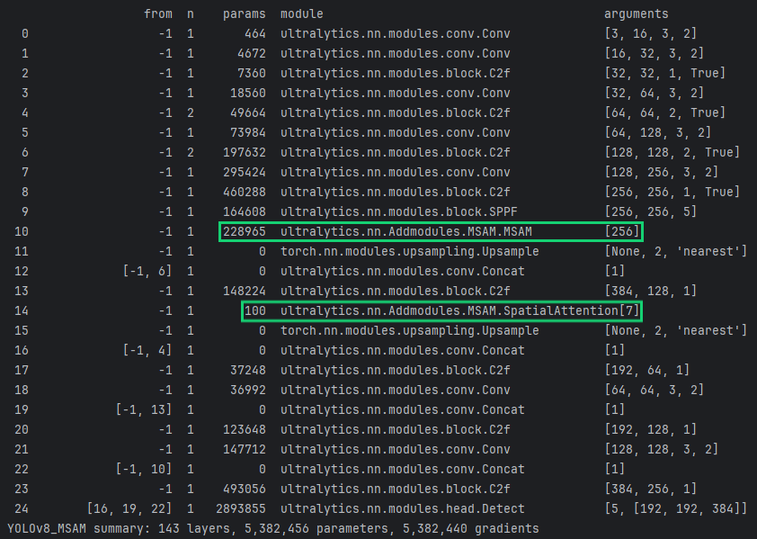 前置条件:确保 MSAM.py 已能被 Ultralytics 解析器发现(将 MSAM.py 放进 ultralytics/nn/addmodules/ 并在其 init.py 中 from .MSAM import *)。