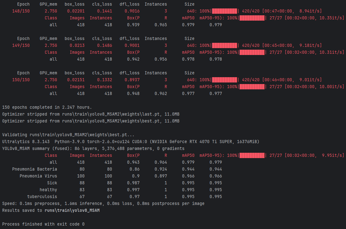在高基线场景(mAP接近饱和,>0.95)下,取得稳定的 +0.5%~+1.0%提升本身就具有技术含金量。本工作在不显著增加推理延迟与算力开销的前提下,实现了mAP50-95 +0.8 个百分点、Recall +2.9个百分点的增益,表明改进并非随机波动,而是结构层面的有效增强。特别是在中低对比度特征的检测敏感性上,MSAM模块表现出了显著优势,这对于早期病灶检测(如肺炎)等场景尤为关键。由于该改进几乎没有增加推理延迟,证明了其在技术上的有效性和高效性。