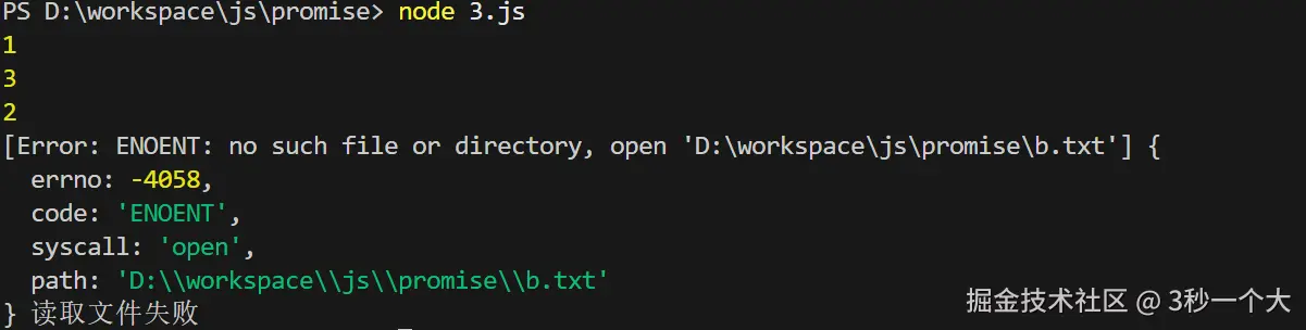 3.js展示了用 Promise 处理文件读取(I/O 操作是典型的异步任务):