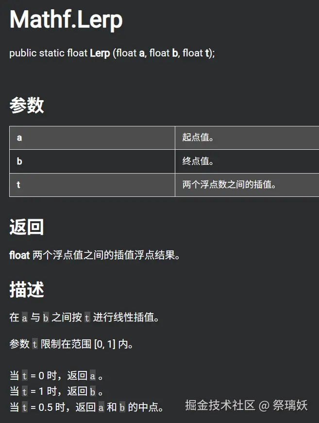 于是我询问了gpt(哎呀这gpt怎么这么好用),他给出的核心方法就是Mathf.Lerp,查询unity手册可以看到: