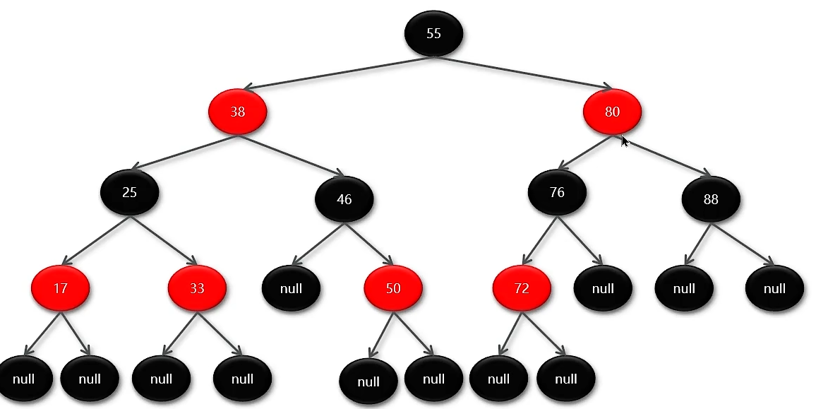 - 从任意节点到叶子结点的所有路径均包含相同数目的黑色节点
