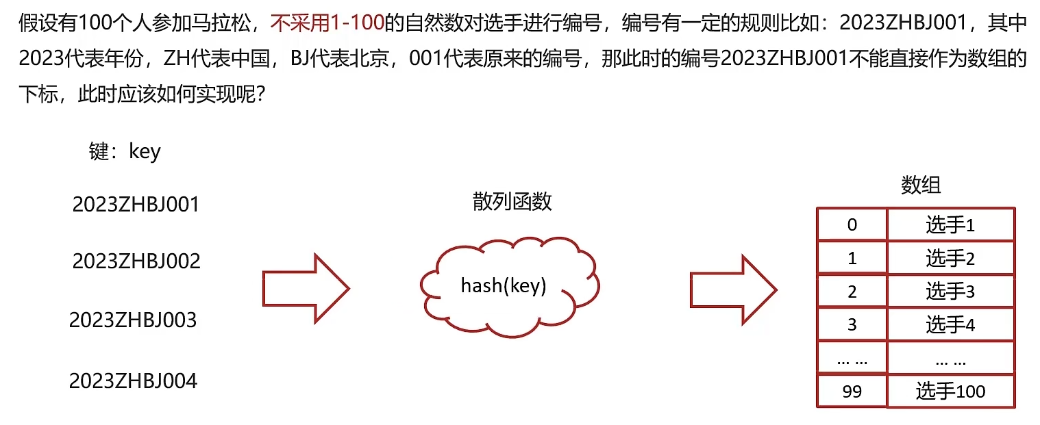 根据键 key 直接访问在内存存储位置的数据 value,通过数组演化而来,利用了数组支持下标进行随机访问数据的特性。