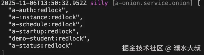 当访问test API 时,会自动在控制台输出当前生效的分布式锁清单,效果如下: