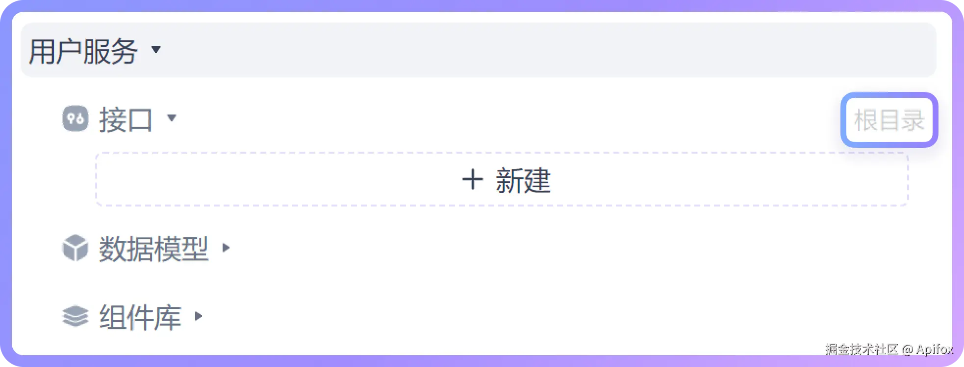 每个模块下都有一个默认的根目录,所有接口和子目录都归属于该根目录。