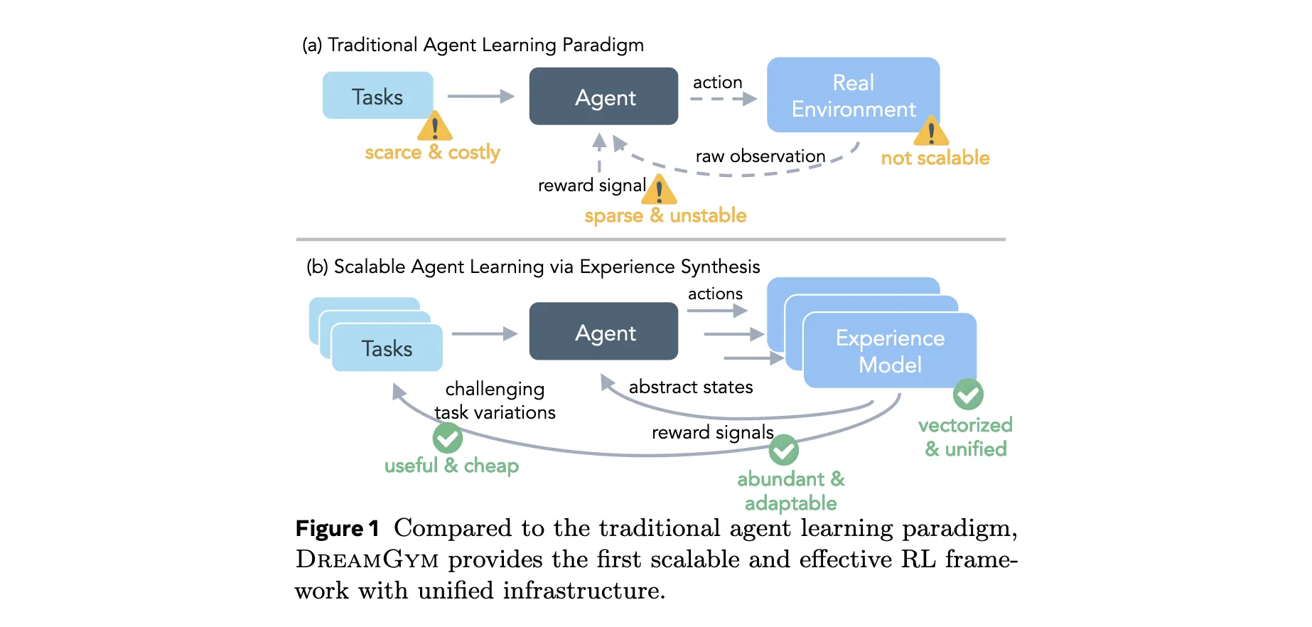 突破智能体训练瓶颈:DreamGym如何通过经验合成实现可扩展的强化学习?