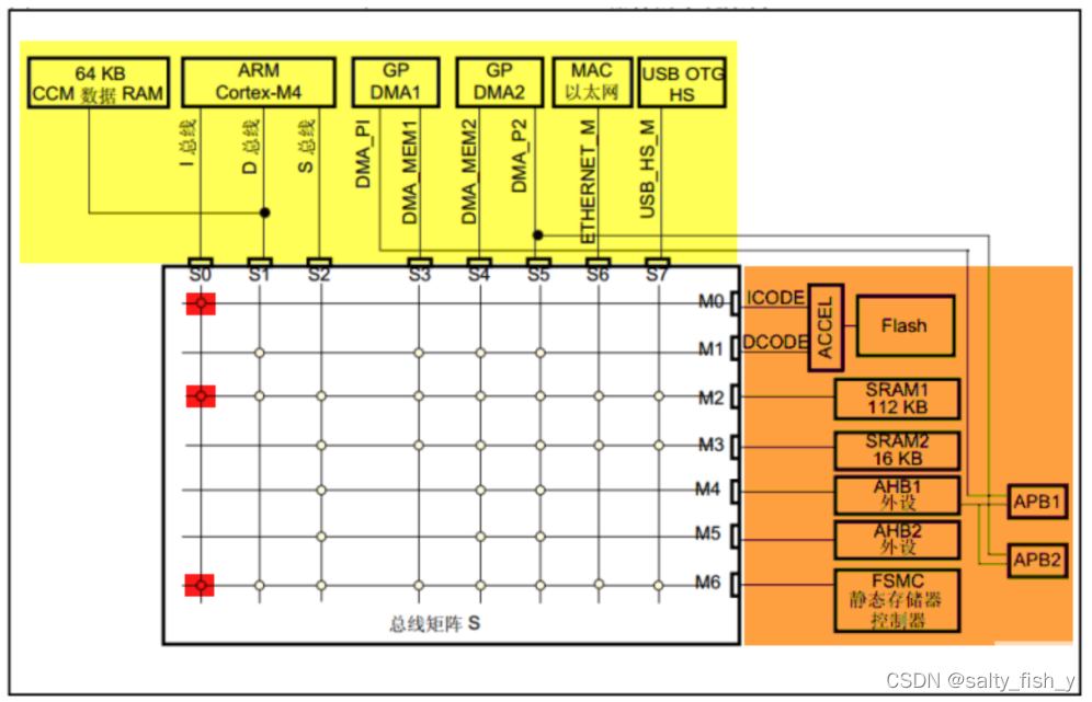 | S2(系统总线 S) | 访问内部 SRAM、AHB 外设及外部存储器 | SRAM1、SRAM2、AHB1 外设、AHB2 外设、FSMC |