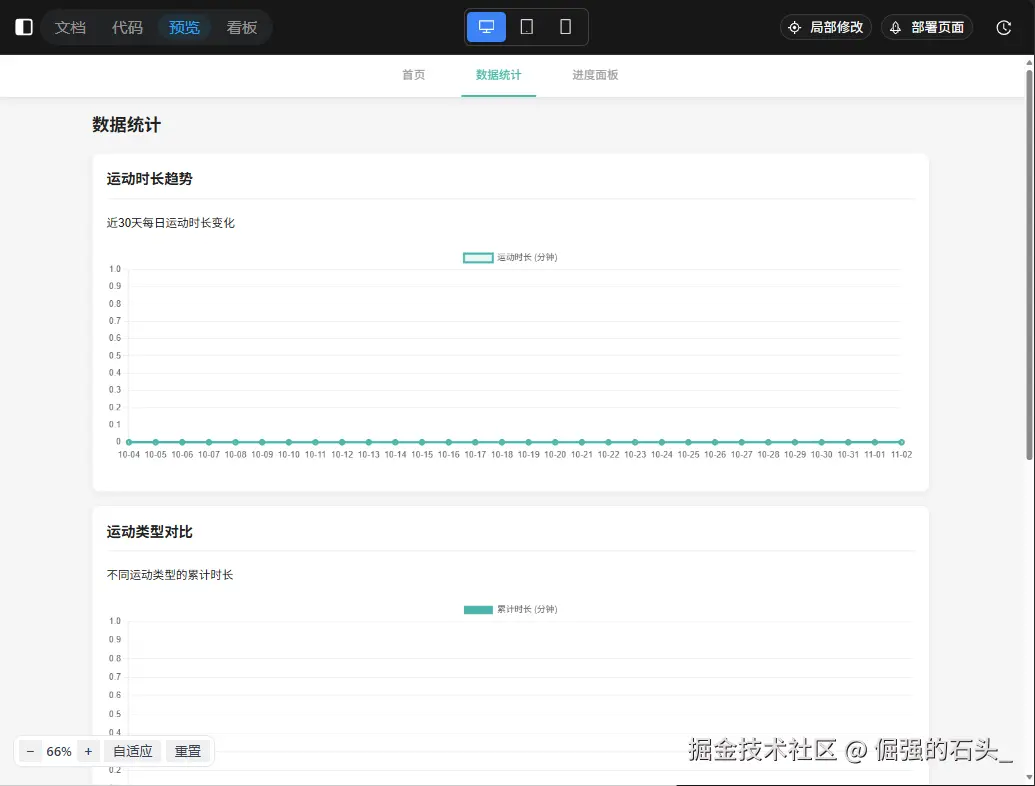 - 🎨 样式调整:"图表颜色改为健康绿色主题,增加运动激励感" → 立即更新视觉风格
