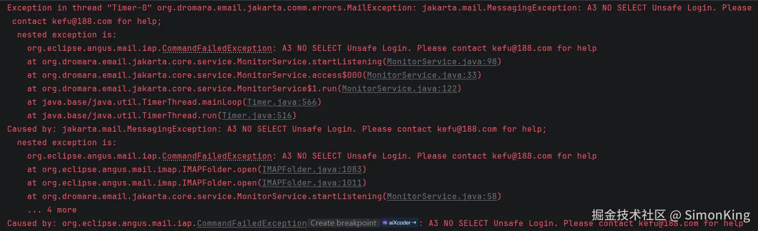 邮箱监听可以监听到某个IMAP协议邮箱中收到的邮件,并对其进行一定的处理。小编在测试发现了异常。
