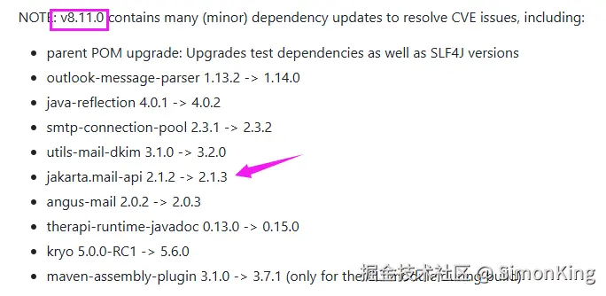 从更新日志来看,v8.11.0已经升级了但部分依赖的版本: