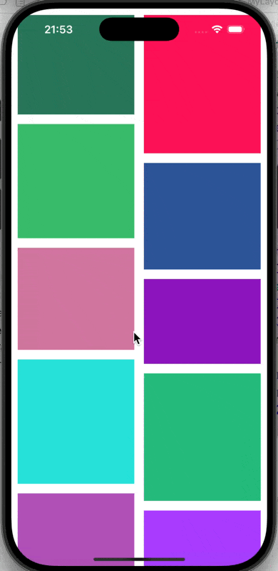 之后便要设置里面具体的排列了,核心可以用一句话来概括:动态维护每列高度,每次将新 item 放到最短列,实现参差不齐的瀑布流