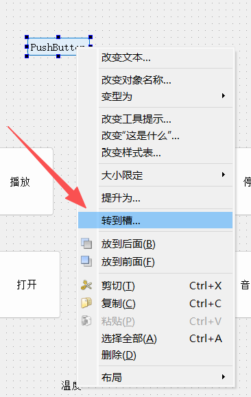 接着需要链接ui界面到代码中,继续右键控件,点击转到槽